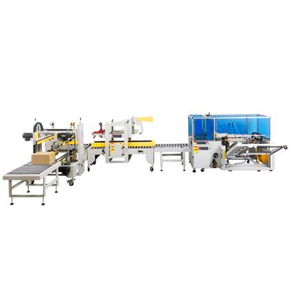 如需要打包可連接全自動打包,進(jìn)行多元化搭配。如在第一步與第二步間加入產(chǎn)品自動裝箱,屆時本包裝流水線將可以基本實(shí)現(xiàn)無人化全自動從開箱到打包好。